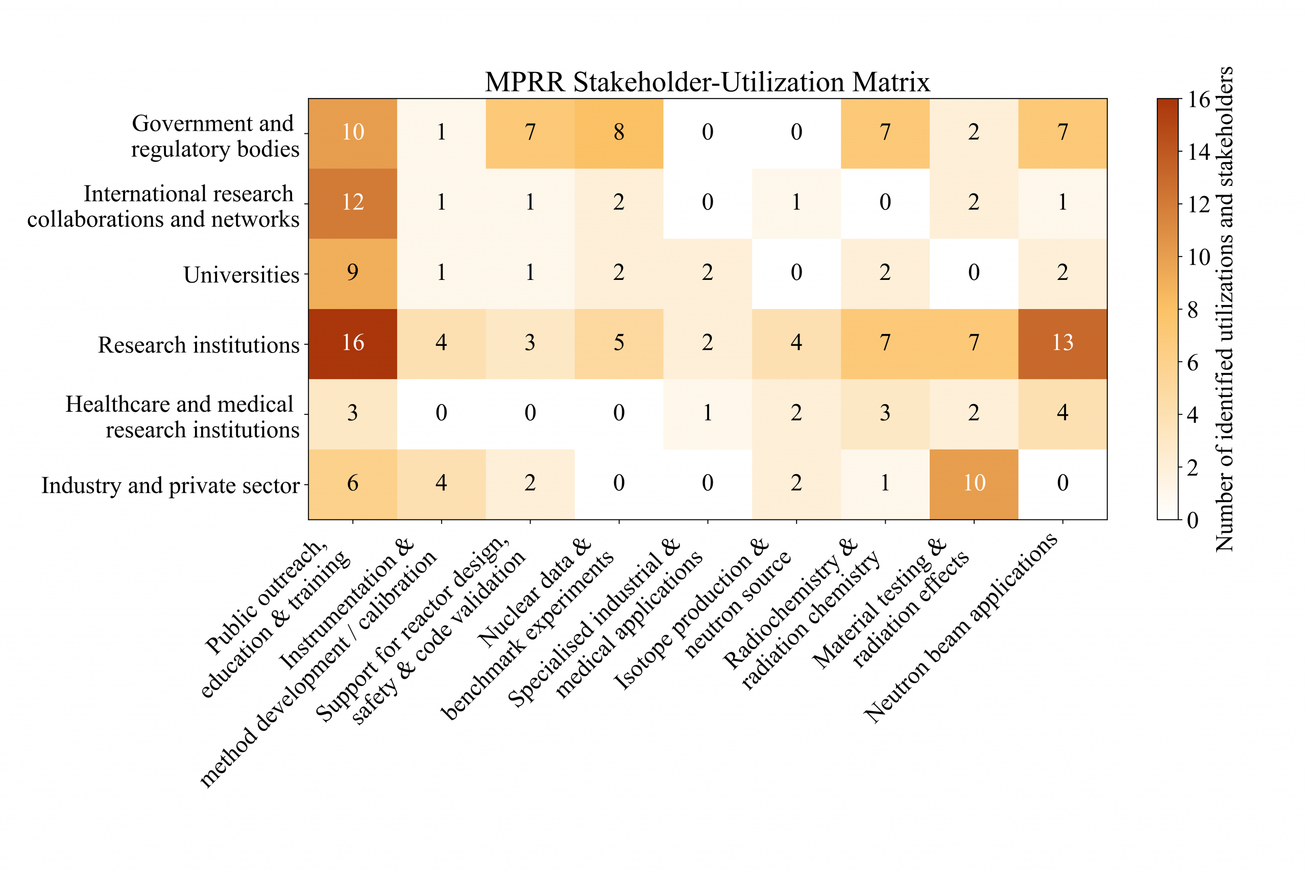 The VERONICA research reactor serves diverse sectors, from academia and industry to healthcare and government. The matrix below illustrates how different applications of the reactor connect with their respective stakeholders, showcasing the range of scientific, technological, and societal impact.